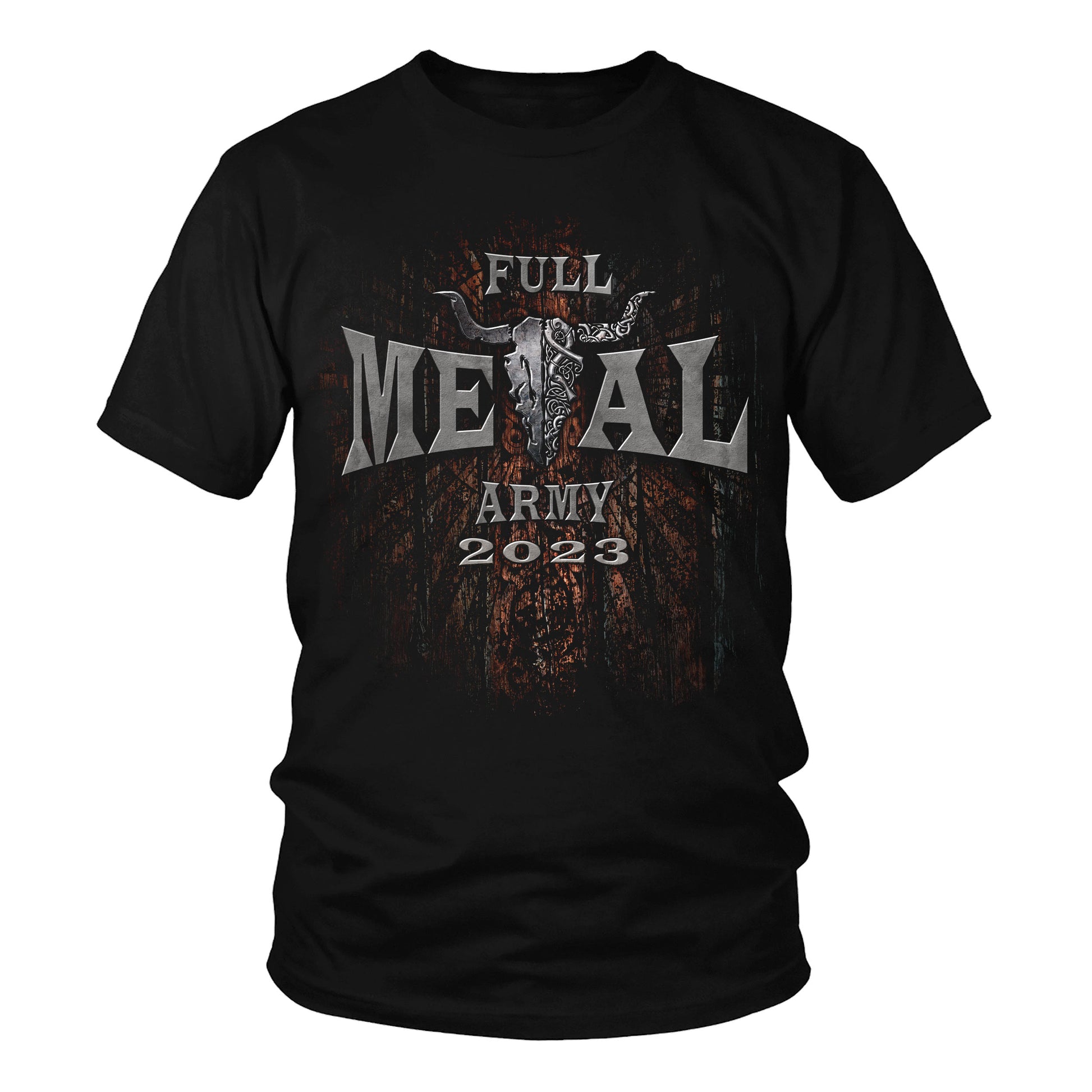 Das T-Shirt zeigt auf der Vorderseite das Hauptlogo des W:O:A 2023 im F:M:A Design.