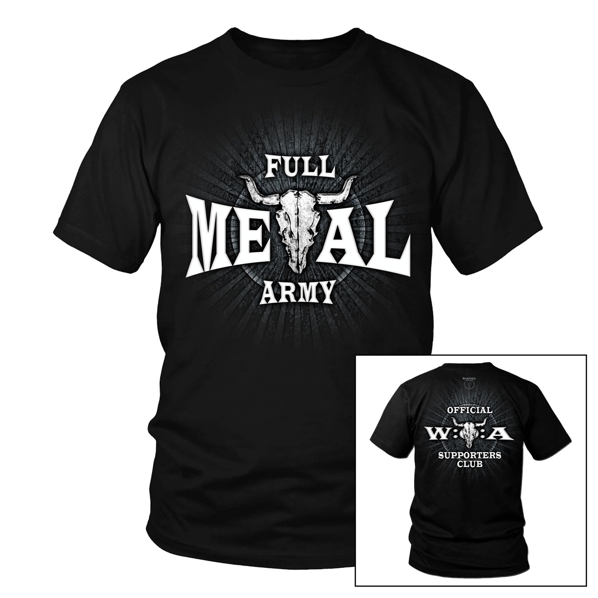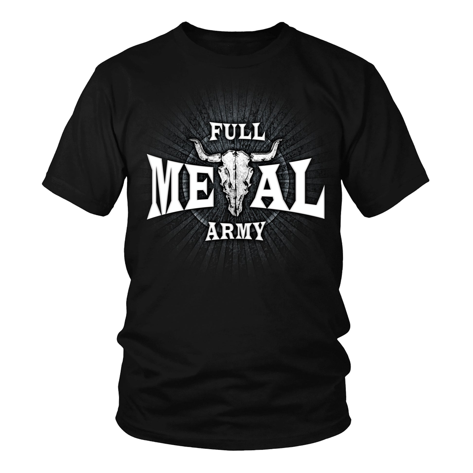 Auf der Vorderseite des Shirts findet ihr das Hauptlogo der FULL : METAL : ARMY auf der Brust.